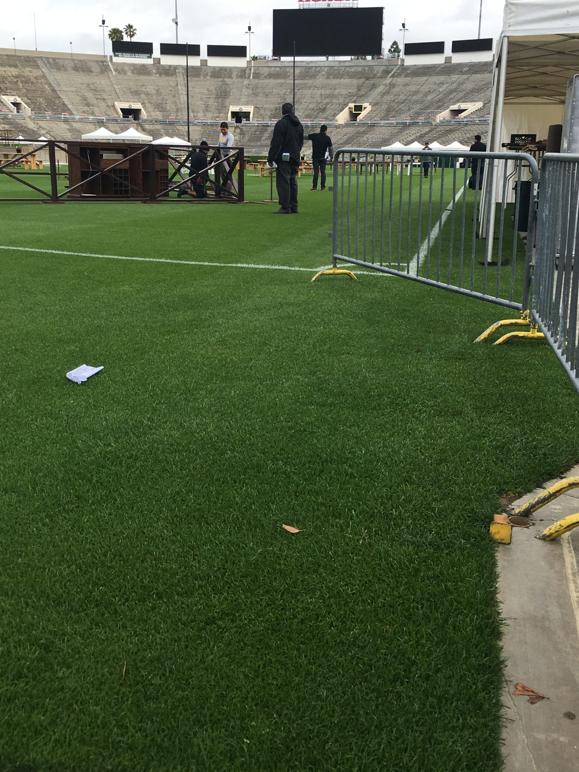 Above: Setting up for the Masters of Taste benefit at the Rose Bowl