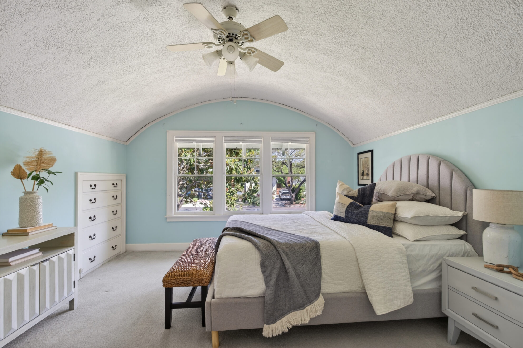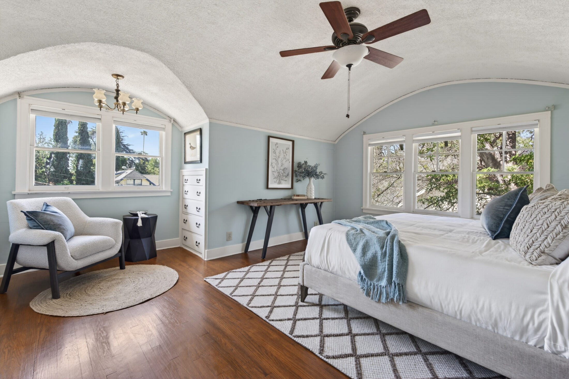 There is a California basement (foundation has been bolted), a breakfast room with a large master crafted built in, formal dining room, separate laundry room and attached garage. There are also barrel vaulted ceilings in the bedrooms upstairs – an incredibly rare architectural feature.